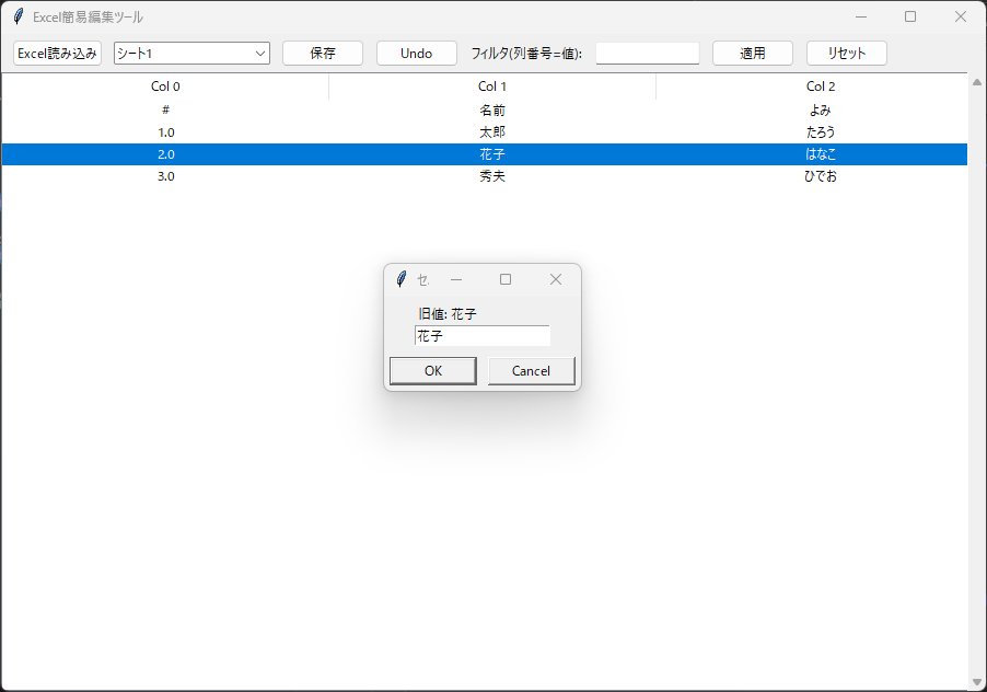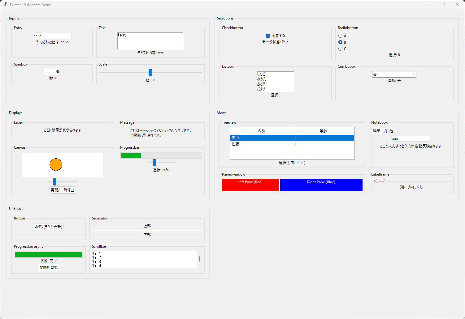 Pythonで作るExcel編集アプリ|ExcelEditorAppでデータ編集をもっと快適に(App005) 2025.11.28 Python tyamada Pythonランド Pythonで作る!HEX表示対応のシリアル通信モニタGUIアプリ徹底解説(App004) 2025.11.26 Python tyamada Pythonランド 【完全版】Python×Tkinterで作る「TODO+ポモドーロタイマー」アプリ入門|初心者でも生産性アプリが作れる!(App003) 2025.11.26 Python tyamada Pythonランド Pythonで作る!Tkinter画像ビューア&簡易編集アプリ完全解説 (App002) 2025.11.25 Python tyamada Pythonランド Python Tkinter GUIデモアプリで学ぶ19種ウィジェット完全ガイド|サンプルコード付き (App001) 2025.11.25 Python tyamada Pythonランド